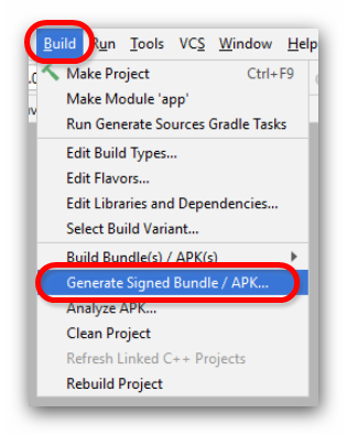 - Open Android Studio and go to the toolbar -> Build -> Generate Signed Bundle / APK.